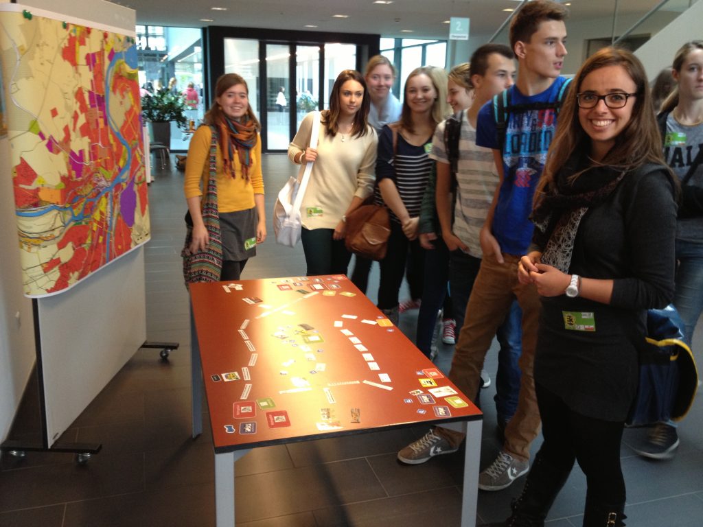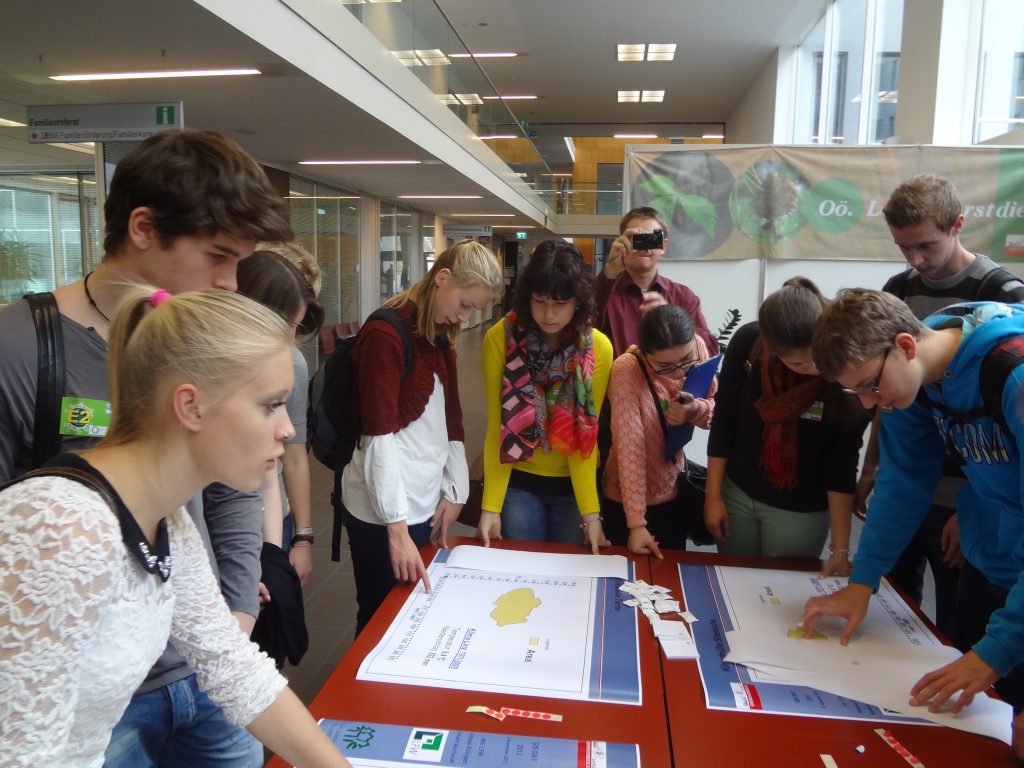 Am Mittwoch, den 6. 11.2013 besuchten die 7. Klassen und die SchülerInnen des Wahlpflichtfachs GWK aus der 8. Klasse den GIS- Day in der Landesdienstleistungsstelle in Linz. Von den insgesamt 1000 Schülerinnen und Schülern aus ganz Oberösterreich die sich beworbenen haben, wurden ca. 400 ausgewählt und so fanden sich an diesem Tag neben den Klassen des b[r]g Enns auch noch sieben weitere Schulen ein. Nach einer kurzen Begrüßung und Einführung in die Bereiche der Geografischen Informationssysteme (kurz: GIS), welche zum Beispiel für die Erfassung und Darstellung von räumlichen Daten in Form von Datenmodellen und Topografien und vielem mehr eingesetzt werden, wurden die Klassen in verschiedene Kleingruppen aufgeteilt, welche nun sechs 20-minütige Workshops zu bewältigen hatten. Besonders angespornt wurden die Schülerinnen und Schüler durch die Bekanntmachung, dass im Anschluss die besten Gruppen bei einem Gewinnspiel teilnehmen durften und so stürzten sich alle mit großem Eifer in die Workshops. Diese behandelten Themen wie zum Beispiel Tourenplanung, GPS- und Winkelmessgeräte, Flächennutzungspläne, Dialektverteilung in Oberösterreich sowie auch die naturräumlichen Begebenheiten von Gewässern,…! Mit großer Motivation beantworteten die Kleingruppen des b[r]g Enns die Fragen und gewannen am Ende sogar zwei Preise! Anschließend, zur Feier des Tages, wurden alle teilnehmenden Schülerinnen und Schüler auf ein gutes Mittagessen eingeladen.