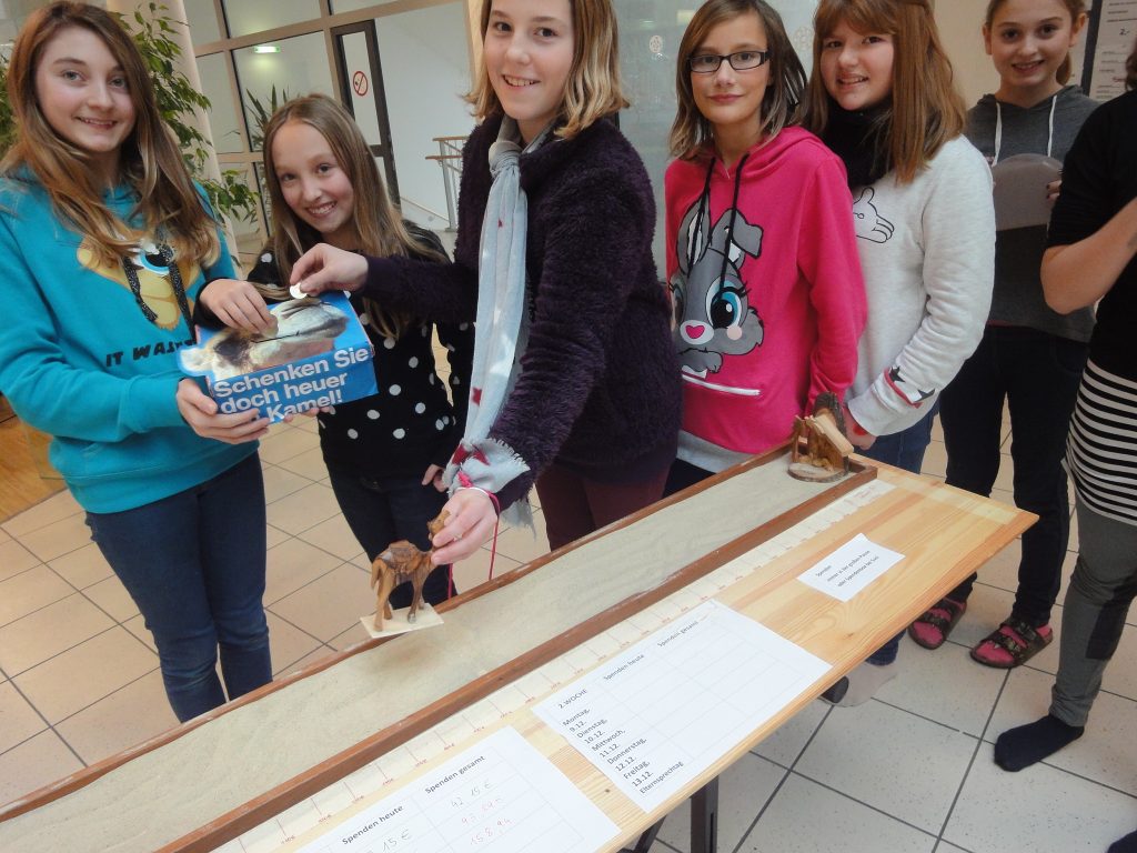 Oder??? Der letzte Sammeltag am Freitag 13. 12. ist der Elternsprechtag: Ob die Spendenbegeisterung auch auf die Eltern überspringt und wir sogar ein zweites Kamel kaufen können? Vielleicht kann dann Anfang der Woche schon ein zweites Kamel an den Start der Spendenlatte gehen!?