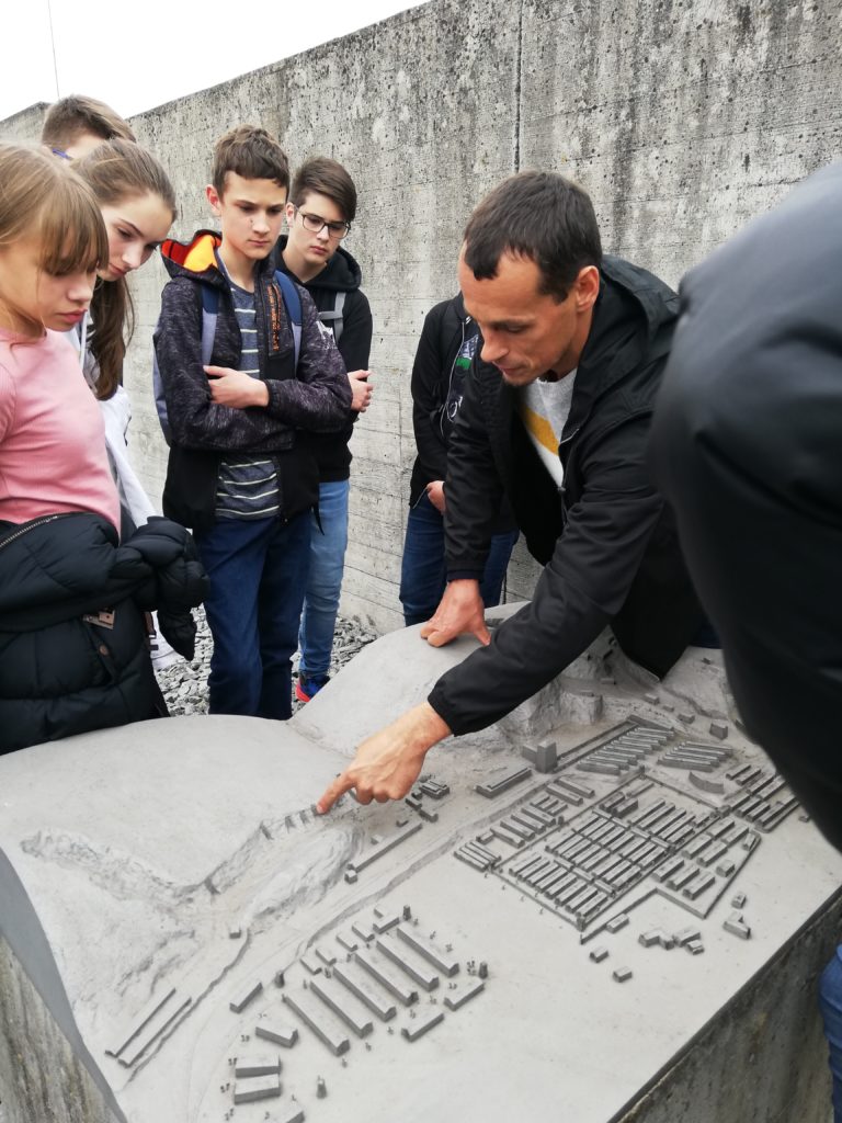 Die Klassen 4A und 4F haben in diesem Schuljahr beide Erinnerungsorte, Mauthausen und Gusen, besucht. In Mauthausen haben wir uns vor allem mit der Zeit von 1938 – 1945 beschäftigt, historische Gebäude besichtigt und unterschiedliche Themen wie Fußball im Lager oder Zwangsarbeit im Steinbruch besprochen. In Gusen hingegen haben wir uns vor allem mit der Nachkriegsgeschichte auseinandergesetzt und uns die Frage gestellt, was mit den Überresten der KZs Gusen geschah und wie Erinnerung an die Lager inmitten einer Wohnsiedlung aussieht.