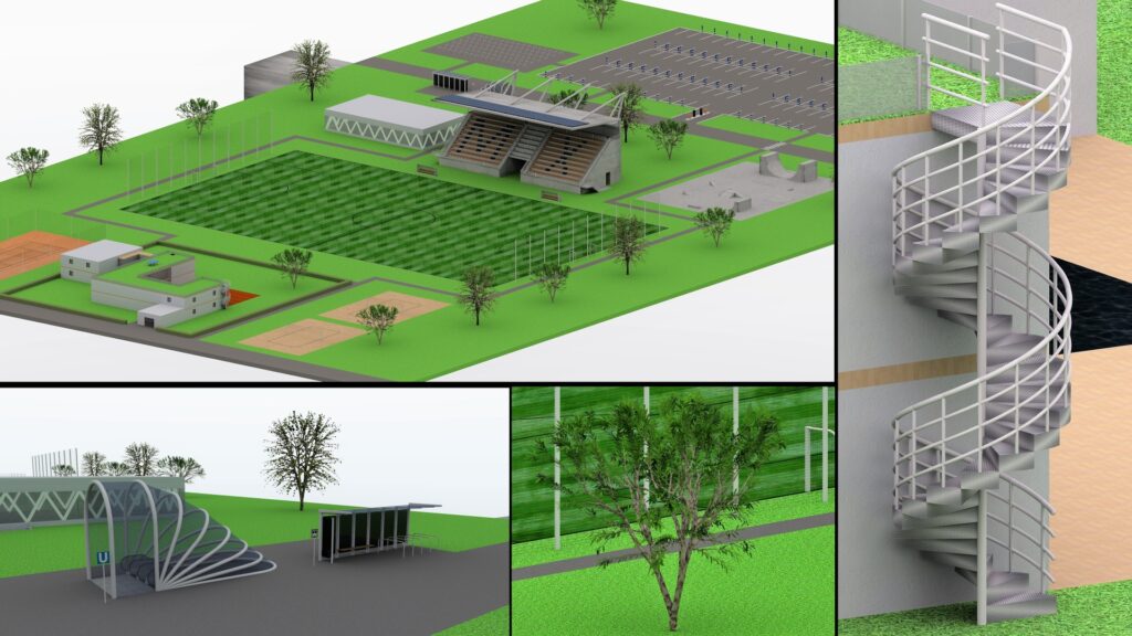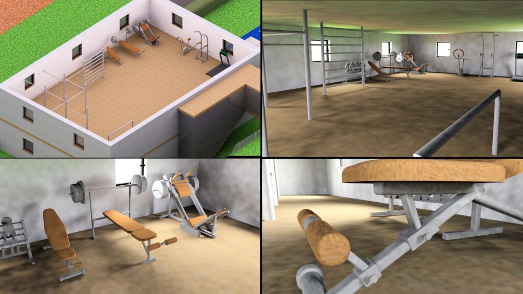 Alles hat damit angefangen, als ich vor Monaten rein aus Freude mein eigenes Haus erstellt habe. Als ich das Thema des Wettbewerbs erfuhr, dachte ich sofort daran, mein Haus zu erweitern. Ich modellierte ein eigenes Fitnessstudio mit samt Wellnessbereich, Sportplätze und eine Zuschauertribüne und Trainerbänke dazu. Da ich schon eine kleine Sucht zum Modellieren entwickelt hab überlegte ich was ich noch hinzu bauen kann. Als leidenschaftlicher Turner kam mir dann die Idee einer untererdigen Turnhalle mit samt Turngeräten zu modellieren. Nachdem ich auch noch einen Skater Platz hinzugefügt habe, brachte mich mein Bruder auf die Idee ein Verkehrsnetz zu erstellen. Sofort machte ich mich an die Arbeit und modellierte die Bushaltestelle, die U-Bahnstation sowie die Parkplätze. Zum Schluss habe ich noch den Außenbereich mit einem Tischtennistisch, Bäumen, Trampolinen und so weiter verschönert.