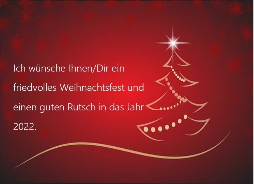 Genießen Sie in dieser für uns alle nicht gerade einfachen Zeit einige nette Weihnachtsstunden im Kreise Ihrer Liebsten.