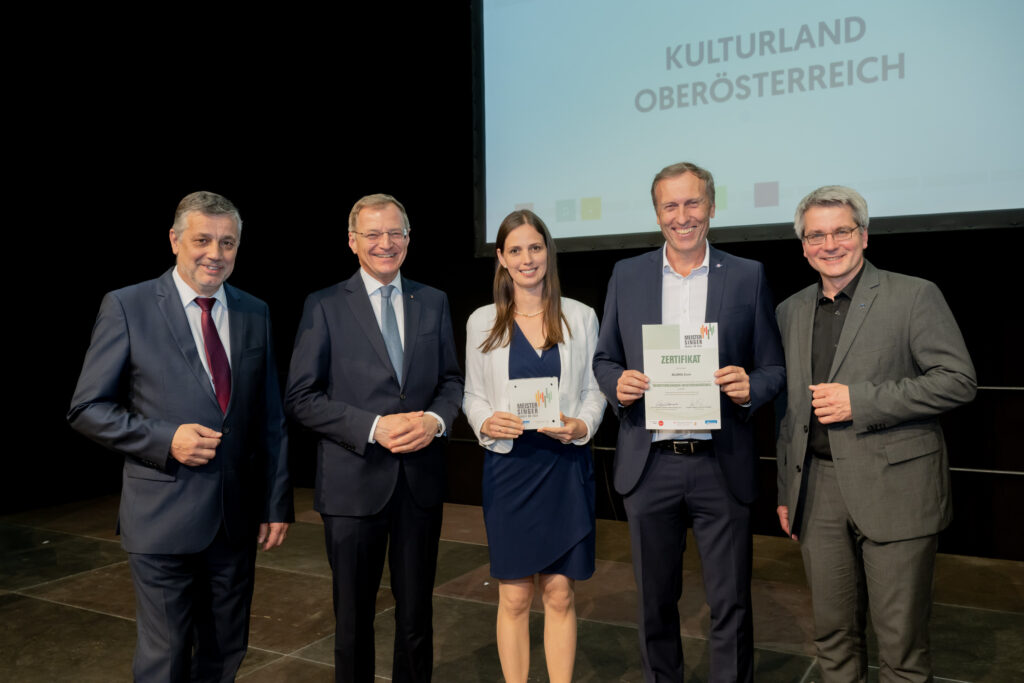 Die Verleihung des Gütesiegels „Oberösterreichische Meistersingerschule“ fand in diesem Jahr im Rahmen der internationalen Musikmesse „Music Austria“ in Ried im Innkreis statt. Landeshauptmann Mag. Thomas Stelzer, der Präsident des oberösterreichischen Chorverbandes, MMag. Harald Wurmsdobler und Bildungsdirektor Dr. Alfred Klampfer würdigten jene oberösterreichischen Schulen, an denen das Chorsingen eine besondere Rolle spielt. Für die Verleihung des Gütesiegels konnten sich Schulen bewerben, an denen hochwertige Chorarbeit stattfindet und somit sängerische, muskalische und soziale Kompetenzen der Schüler*innen stark gefördert werden. Das Gütesiegel wird von einer Fachjury für jeweils ein Jahr vergeben. Dem Schulchor des b[r]g Enns wurde das Gütesiegel bereits zum vierten Mal überreicht.