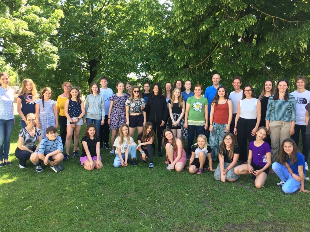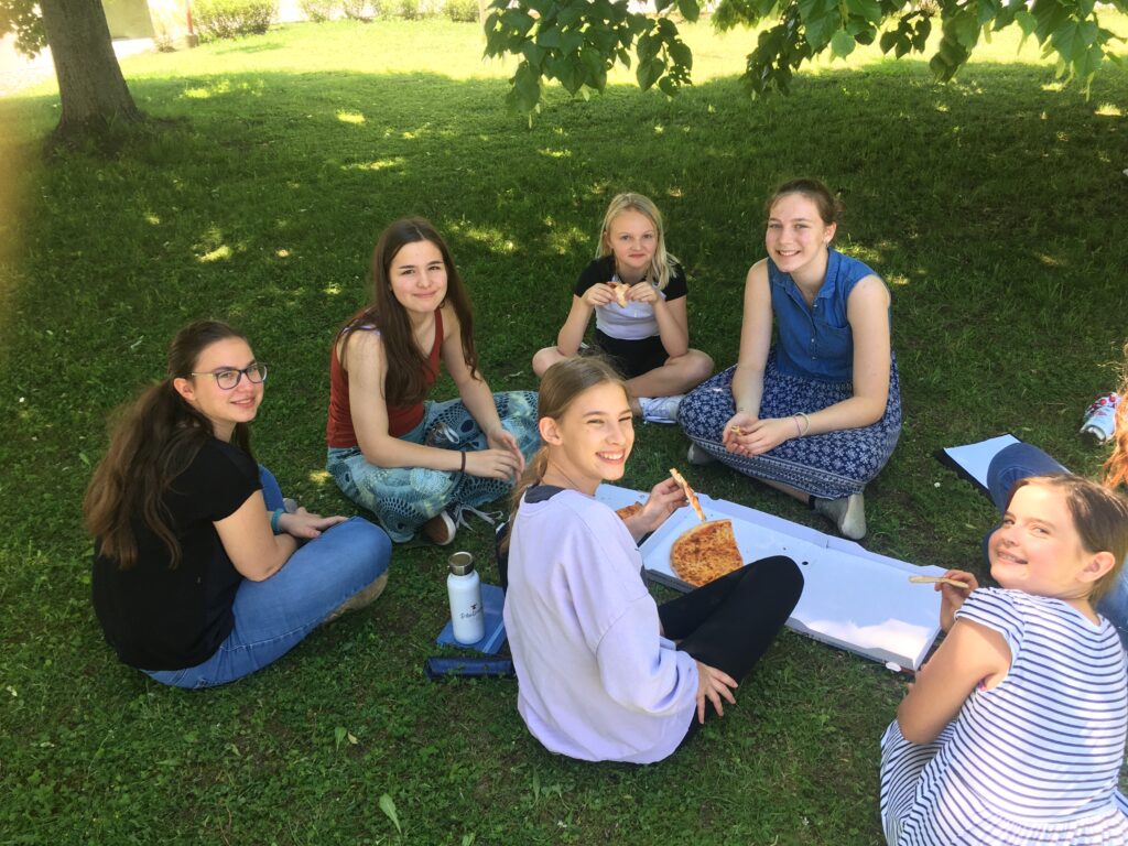 Nach einer zweijährigen C(h)oronapause konnte am Donnerstag, 19.5.2022, endlich wieder ein Chortag veranstaltet werden. Der singreiche Tag begann in der Aula, von wo alle gemeinsam ins Pfarrzentrum Sankt Laurenz marschierten. Dort wurden uns zwei Säle mit Flügel zur Verfügung gestellt. Wir probten unermüdlich (außer wenn wir beim Einsingen und Aufwärmen zum Gähnen aufgefordert wurden 😉), und wurden in den Pausen durch süße Überraschungen gestärkt und motiviert. Aber nicht nur unsere stimmlichen Fähigkeiten waren gefragt: Beim rhythmischen Gehen und Klatschen im Kreis kam es zu so manchen Verhaspelungen und vor allem zu Gelächter. In der Mittagspause, in der wir mit Pizzen verpflegt wurden, besuchte uns sogar unser Herr Direktor, um sicherzustellen, dass auch wirklich etwas vorangehe 😉. Und davon konnte er überzeugt sein: Es wurde nicht nur während der Proben gesungen, sondern auch in den Pausen wurden spontan Kanons angestimmt! Um 16:30 endete der Tag – und als alle beschwingt und mit lauter Ohrwürmern nach Hause gingen, war man sich einig: Das war ein gelungener Tag!