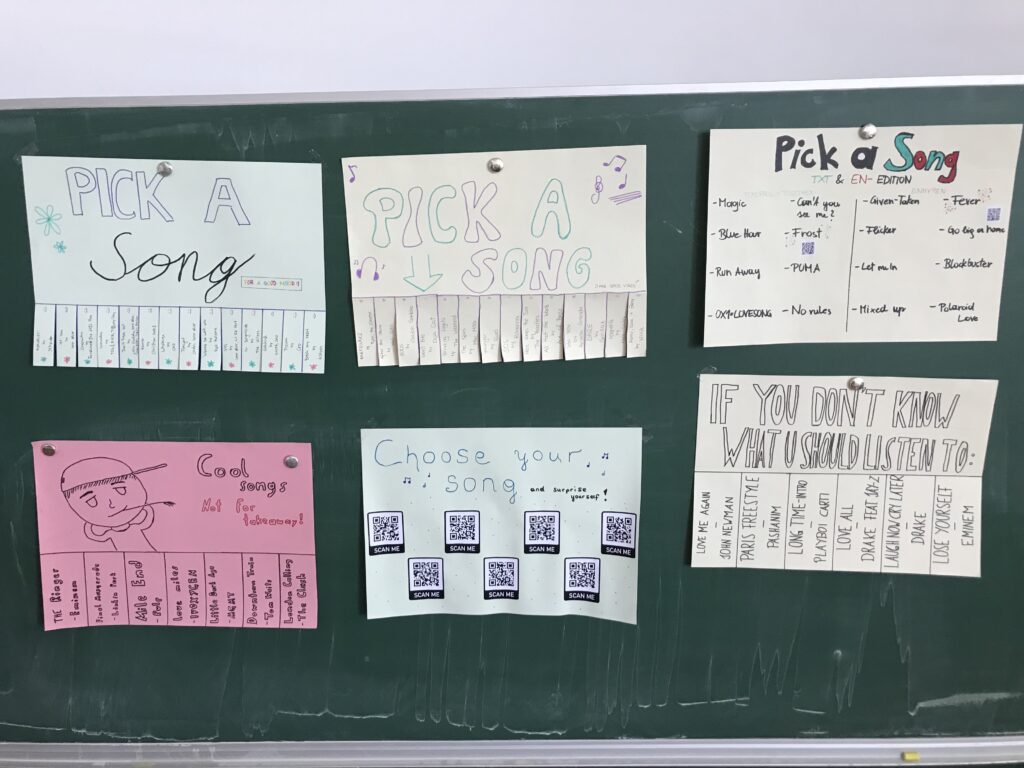 Im Rahmen des Englisch-Wahlpflichtfaches haben die Schüler*innen einige Lieder ausgewählt und präsentiert, die für sie „happy songs“ sind und für „good vibes“ sorgen. Schließlich hat die Gruppe Poster gestaltet, die ihre persönliche Musikauswahl präsentieren. Diese sind nun im Schulgebäude aufzufinden – jeder darf sich gerne inspirieren lassen und ausprobieren, ob die Liederwahl auch bei sich für „a good mood“ sorgt – für besonders Eilige sind einige davon mit QR-Code ausgestattet. Ansonsten darf bei vielen Posters der Vorschlag abgerissen und mitgenommen werden. Viel Spaß und gute Laune beim Ausprobieren! Enjoy!
