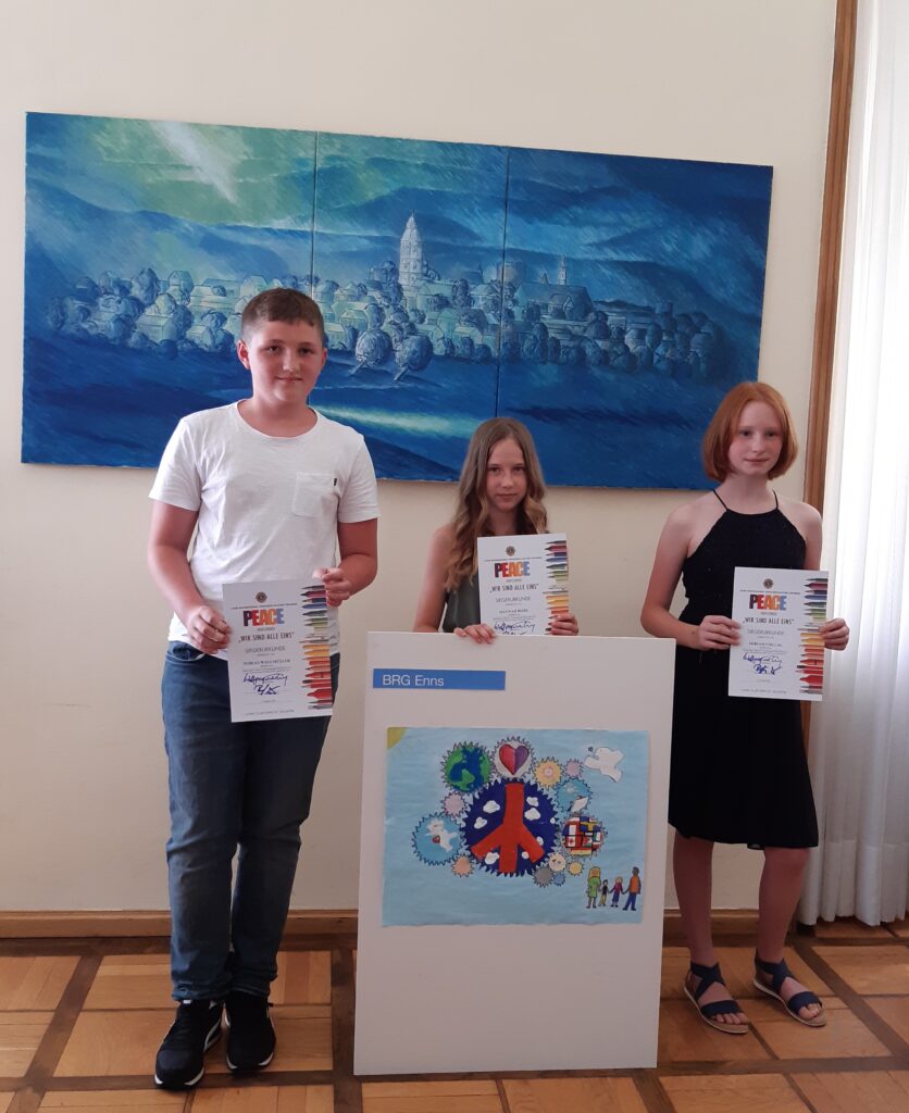 Dass das b[r]g Enns am jährlich stattfindenden internationalen Friedensplakat-Malwettbewerb, der unter dem heurigen Motto „FRIEDEN – Wir sind alle Eins“ stand, teilnimmt, hat bereits eine langjährige Tradition.
