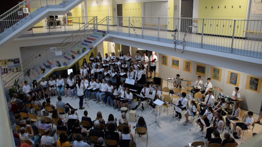 Nach einer 2-jährigen Coronapause konnte am 28.6.2022 endlich wieder ein Chor- und Orchesterkonzert stattfinden. Mit abwechslungsreichen Stücken wurde das zahlreiche Publikum in der gut gefüllten Aula unterhalten. Von alten Klassikern über unaussprechbare afrikanische Lieder bis hin zu modernen Popsongs wurde alles musiziert.