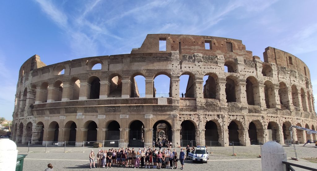 Vom 13. bis zum 17. September verbrachten wir spannende Tage in der Stadt Rom. Nach einer ungeplant abenteuerlichen Fahrt kamen wir einige Stunden verspätet in Rom an, wo wir von strahlendem Sonnenschein und sommerlichen Temperaturen begrüßt wurden. Nachdem wir unsere Koffer im Hotel abgegeben hatten, machten wir uns schleunigst auf den Weg zum Kolosseum, um unseren Timeslot nicht zu verpassen. Danach hatten wir die Möglichkeit, das Gebiet rund um das Hotel zu erkunden und den ersten Abend in der Ewigen Stadt ausklingen zu lassen.