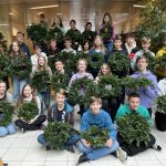 Wir halten unsere Kränze, die wir am 24.11.2022 gebunden haben, mit vollem Stolz in unseren Händen. Wieder einmal konnten die Schüler*innen beweisen, wie viel Geschick, Freude und Motivation beim Adventkranzbinden in ihnen steckt.