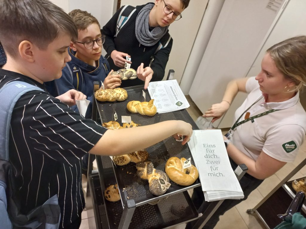 53 Schüler*innen der 3C und 3E haben vor Ort in der „gläsernen Bäckerei“ getestet, welche Talente man so braucht als Handwerker*in im modernen Bäckereigeschäft.