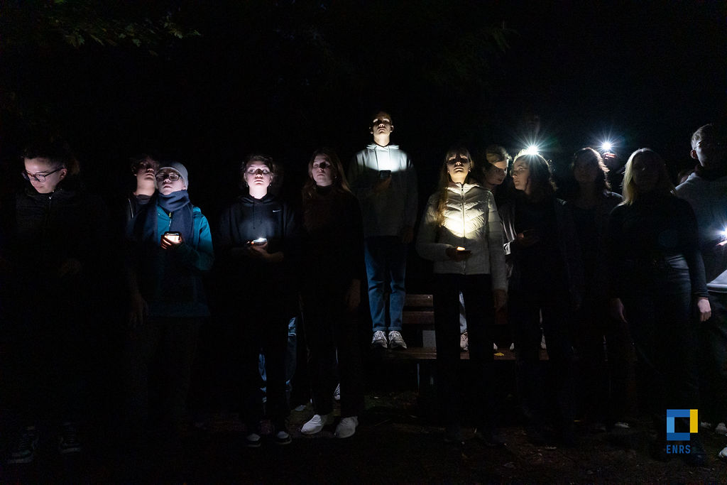 28 Schüler*innen und 4 Pädagog*innen aus Litauen, Polen, Rumänien und Österreich nahmen von 9. bis 16. Oktober 2022 an der 9. Edition des internationalen Bildungs-und Kunstprojekts Sound in the Silence teil. Aus Österreich waren Schüler*innen der 7.+8. Klassen des b[r]g Enns in Begleitung von Prof. Mayr vertreten: Clara Daubek-Puza, Leonie Füchtner, Kilian Killigseder, Marie Schöfberger, Yannick Schott, Carina Tischberger und Victoria Wagner. Die Schüler*innen verbrachten 7 Projekttage an den KZ-Gedenkstätten Mauthausen, Gusen und in der ehemaligen Stollenanlage „Bergkristall“. Die Teilnehmer*innen konnten in Workshops und Rundgängen die Gedenkorte kennenlernen. So waren sie beispielsweise während des Audiowegs in Gusen mit Überresten aus der Lagerzeit inmitten des heutigen Siedlungsbaus konfrontiert. Die Erfahrungen wurden in Kunstworkshops reflektiert.