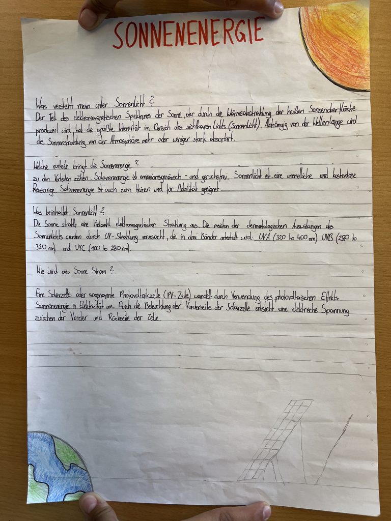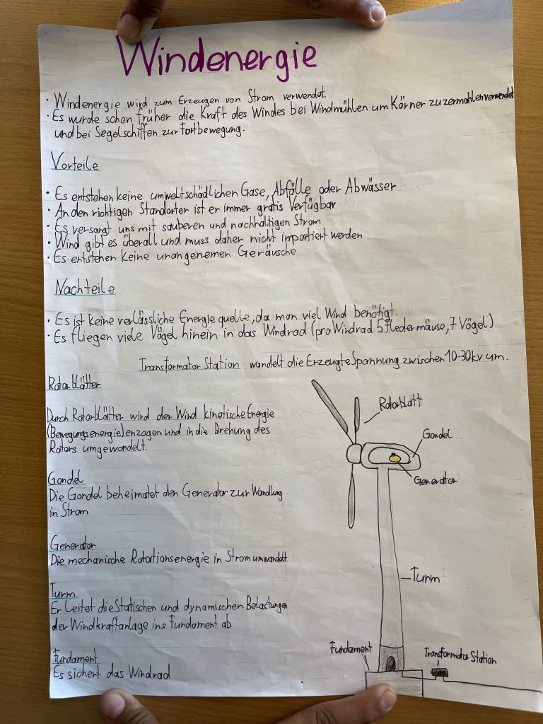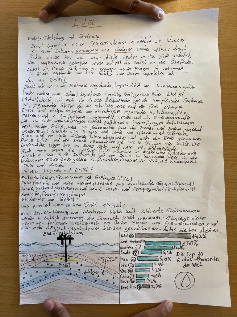 Die 1A-Klasse hat sich in den letzten Wochen mit verschiedensten Rohstoffen (zum Beispiel Erdöl, Gas, Windenergie, Sonnenenergie,..) beschäftigt. Vor allem die Gewinnung, Verwendung sowie nachhaltige Alternativen standen im Vordergrund. Am Schluss dieser intensiven Beschäftigung stand die gegenseitige Präsentation des neu Erfahrenen gegenüber den Mitschüler*innen. Einige Gruppen haben sich besonders engagiert gezeigt und sehr kreative und informative Plakate angefertigt.