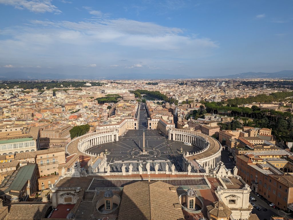 Nach der Anreise mit dem Nachtzug konnten wir die übrige Zeit noch nutzen, um die Sehenswürdigkeiten rund um unser Hotel zu besichtigen, wie z.B. die Aurelianische Stadtmauer und das Bäckergrab. Am Mittwoch begaben wir uns auf eine Zeitreise und erkundeten das beeindruckende Kolosseum und das geschichtsträchtige Forum Romanum. Diese antiken Stätten erzählen Geschichten von Gladiatorenkämpfen und vom politischen, religiösen und kulturellen Leben im alten Rom. Der Donnerstag führte uns zum Petersdom und den Vatikanischen Museen. Der Weg zur Kuppel war anstrengend, da wir 560 Stufen überwinden mussten, aber unsere Mühen wurden mit einem unglaublichen Ausblick über Rom belohnt. Am Freitag erkundeten wir die Spanische Treppe und warfen eine Münze in den Trevi-Brunnen, um das Glück anzurufen. Es war der perfekte Abschluss für unsere erlebnisreiche Reise. Unsere Heimreise erfolgte in einem gemütlichen Nachtzug, der uns sicher nach Hause zurückbrachte.