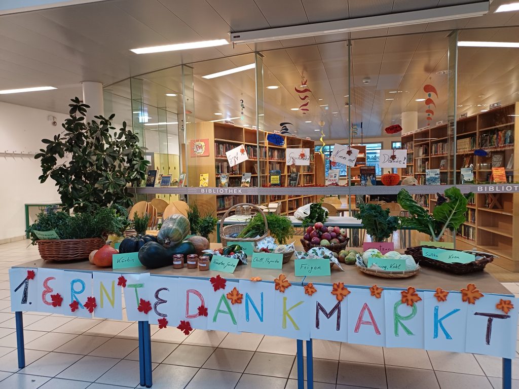 Somit wurden, zum ersten Erntedankmarkt im b[r]g Enns, alle Eltern, Schüler*innen und Lehrer*innen dazu eingeladen ihre reichliche Ernte, die sie selbst im Überfluss haben, zu teilen und kostenlos an andere weiterzugeben. Damit konnte ein wichtiges Zeichen gegen die Lebensmittelverschwendung gesetzt werden. Außerdem bot diese Aktion allen Schüler*innen des b[r]g Enns die Möglichkeit, die Fülle von kostbarem Gemüse, Obst und Kräutern, die es jetzt noch im Herbst zu ernten gibt, zu erfahren. So konnten sie Feigen, Kornelkirschen, Gurken, Paprika, Karotten, Äpfel, Birnen, Kiwi etc. gleich verkosten und Kürbisse, Kräuter, Kren, Süßkartoffeln, Quitten etc. für die häusliche Küche mitnehmen.