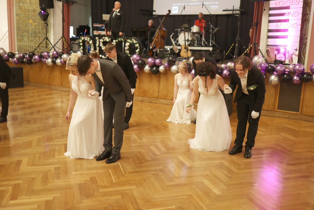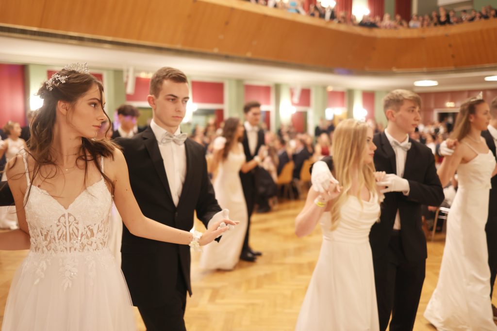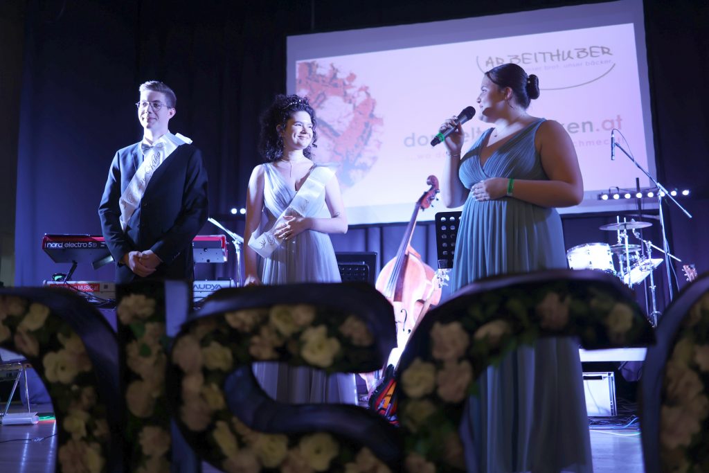 Mehr als 800 Besucher*innen feierten gemeinsam mit den Maturant*innen und wurden dabei bestens unterhalten durch die Band Voices and Music und DJ Andre Mayer, der in der Disco-Bar auflegte. Die Maturant*innen begeisterten mit einer beeindruckenden Choreographie beim Eintanzen und einer spektakulären Mitternachtseinlage. Auf dem Programm standen außerdem die Vergabe von Lehrer*innen Awards für das Lehrpersonal und die Wahl einer Ballkönigin und eines Ballkönigs.