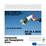 Unsere belgische Partnerschule und wir, die 7. Klassen und das Belgienteam2024 veranstalten gemeinsam einen Flashmob, bei dem wir gemeinsam die Europahymne singen. Sei dabei!
