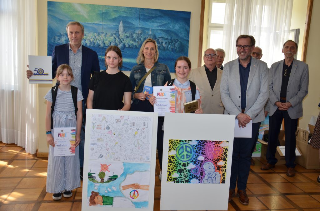 „Es gibt keinen guten Krieg und keinen schlechten Frieden“ – Das war der Spruch mit dem Kristin Spenlingwimmer aus der 2A ihr Friedensplakat kommentierte. Sie erreichte mit ihrem Plakat den ersten Platz des b[r]g Enns. Bei der Preisverleihung nahmen sieben Schulen aus der Region teil. Insgesamt wurden 300 Werke eingereicht. Den zweiten Platz erreichte Luisa Freudenschuss aus der 1B und den dritten Platz Emma Grimm aus der 3E.