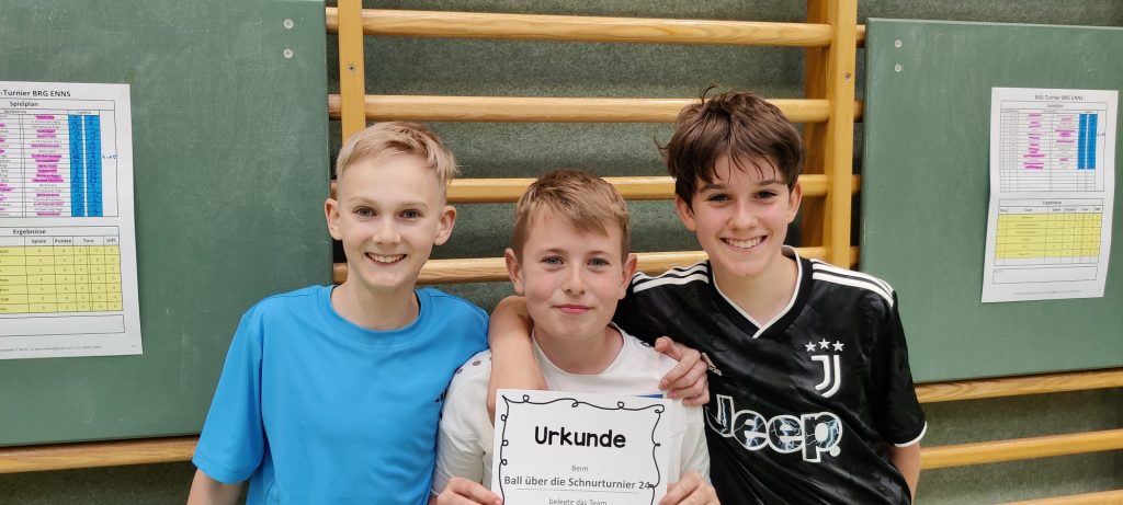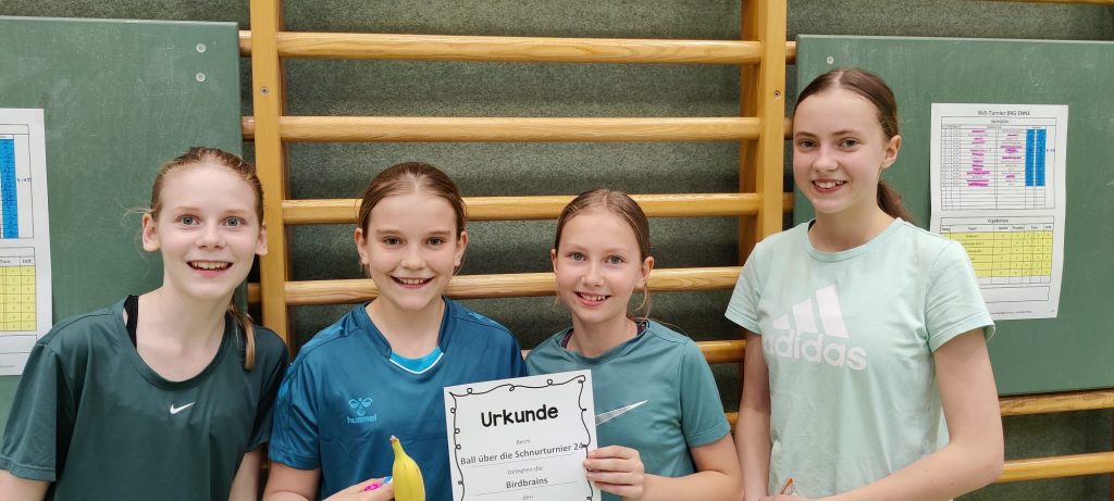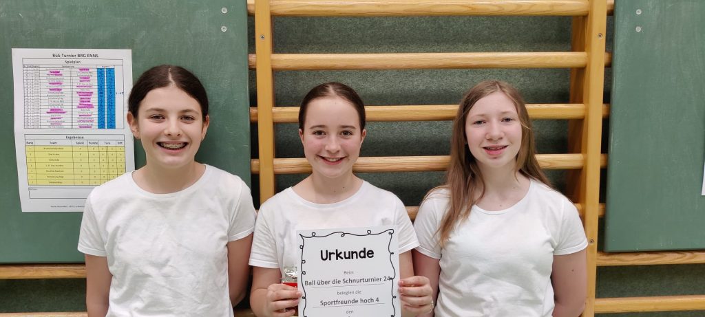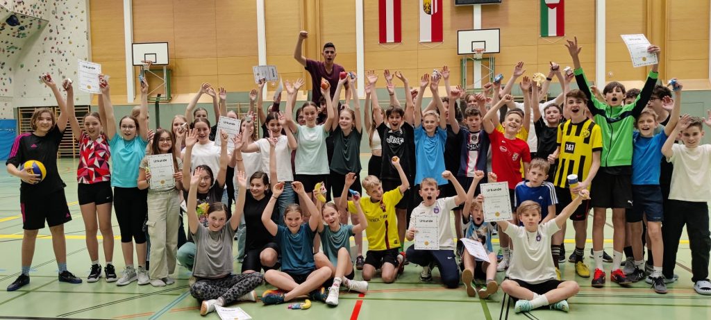 Am Termin des Elternsprechtags fand zeitgleich das „Ball über die Schnur-Turnier“ für die 2. Klassen statt. Dabei spielten jeweils sechs Mädchen-Teams und sieben Burschen-Teams um den Sieg. Eine reibungslose Durchführung des Turniers war vor allem aufgrund des Engagements von freiwilligen Schüler*innen der 7. Klasse möglich. Diese haben die Spielleitung mit Schiedsrichtertätigkeiten stark unterstützt. Die Platzierung der Mädchen fiel wie folgt aus: