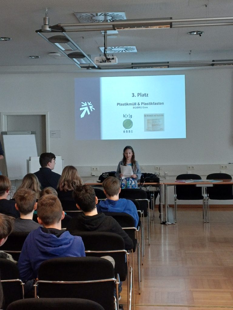 Am 22.04.2024 erfolgte die Preisverleihung am Klimawettbewerb der LSV OÖ in der Bildungsdirektion in Linz. Dazu fuhren alle Schüler*innen der Klasse 1D mit ihrer Klassenvorständin Frau Prof. Heike Moser und ihrem Deutschlehrer Herrn Prof. Daniel Gallner nach Linz. Die Preisverleihung fand um 15.00 Uhr in der Bildungsdirektion statt. Vertreter der Landesschülervertretung, des Klimabündnisses sowie der Bildungsdirektor Alfred Klampfer begrüßten die eingeladenen Teilnehmer*innen am Klimawettbewerb. Es wurden die ersten bis dritten Plätze vorgestellt und vergeben. Die Klasse 1D durfte sich über ihren dritten Preis (eine Wurmkiste und eine Urkunde für ihre Klasse) freuen.
