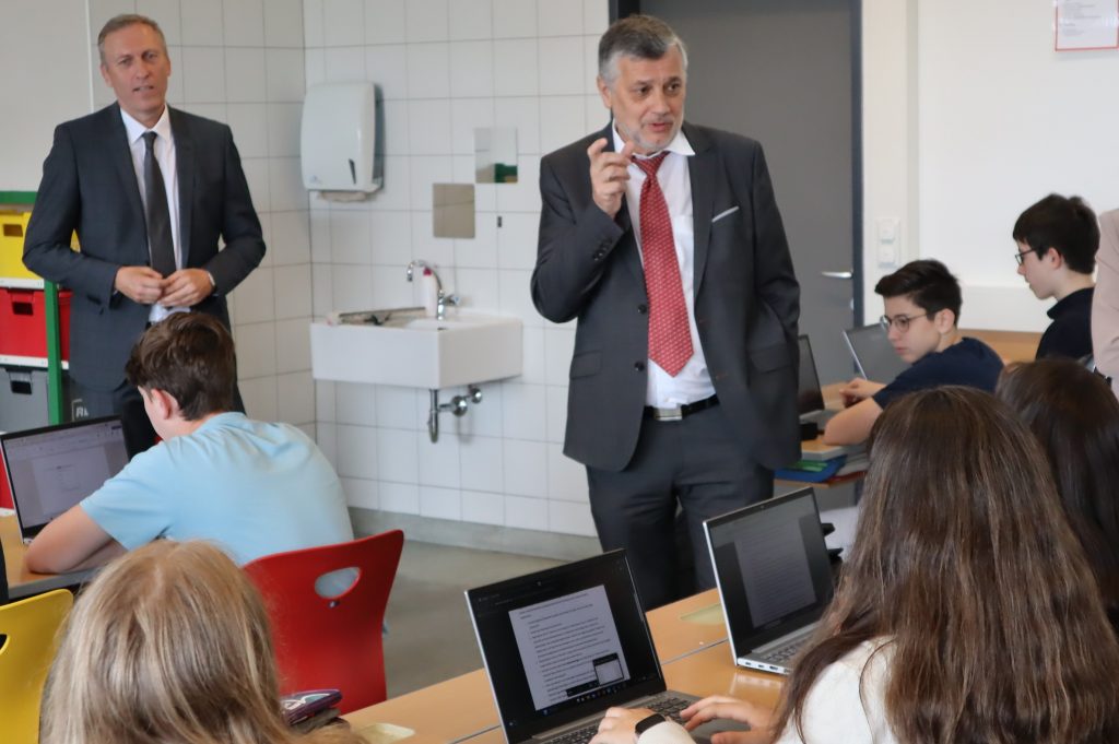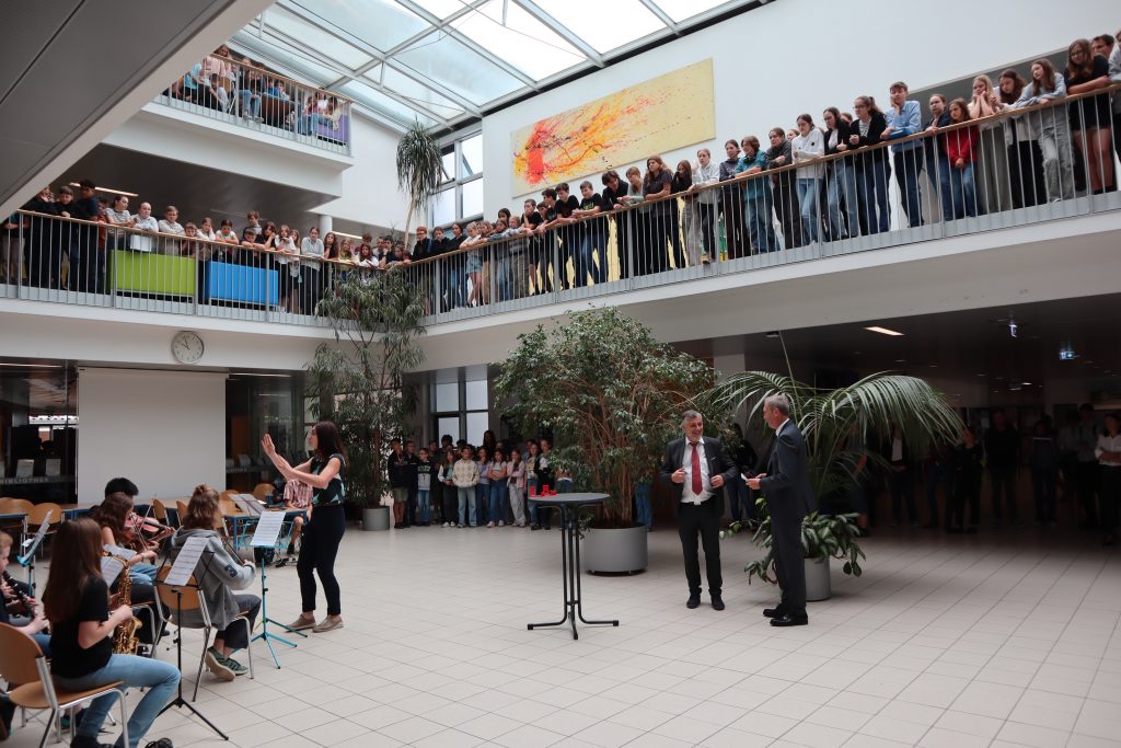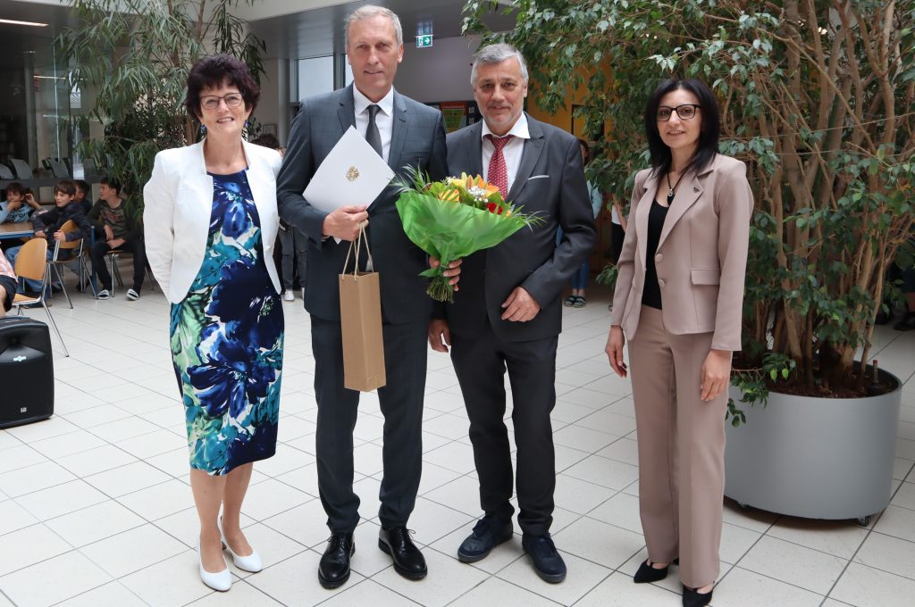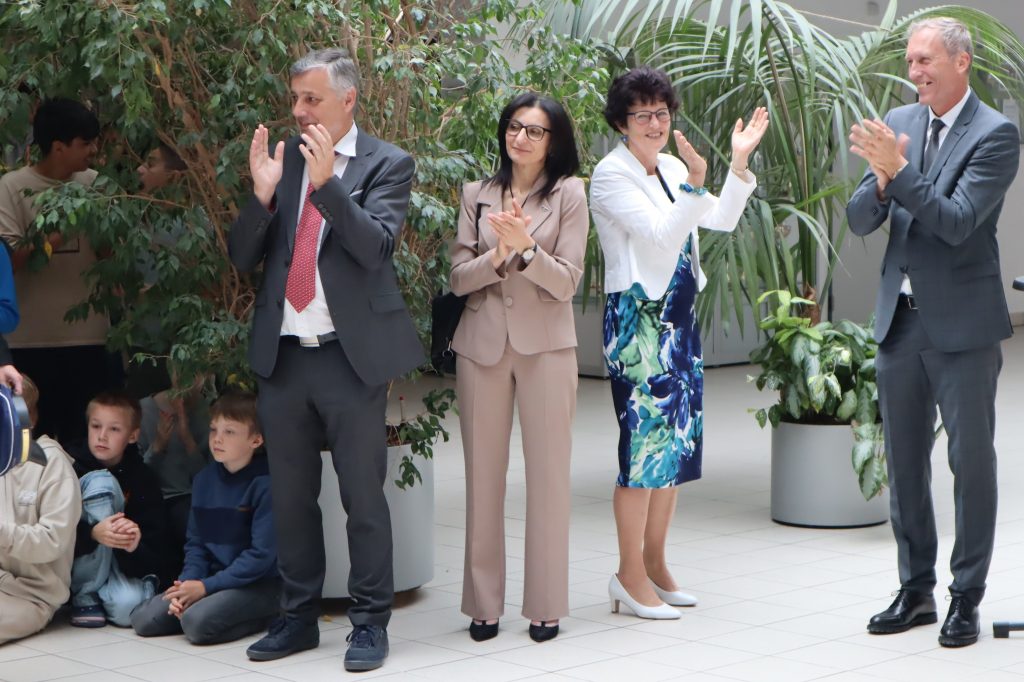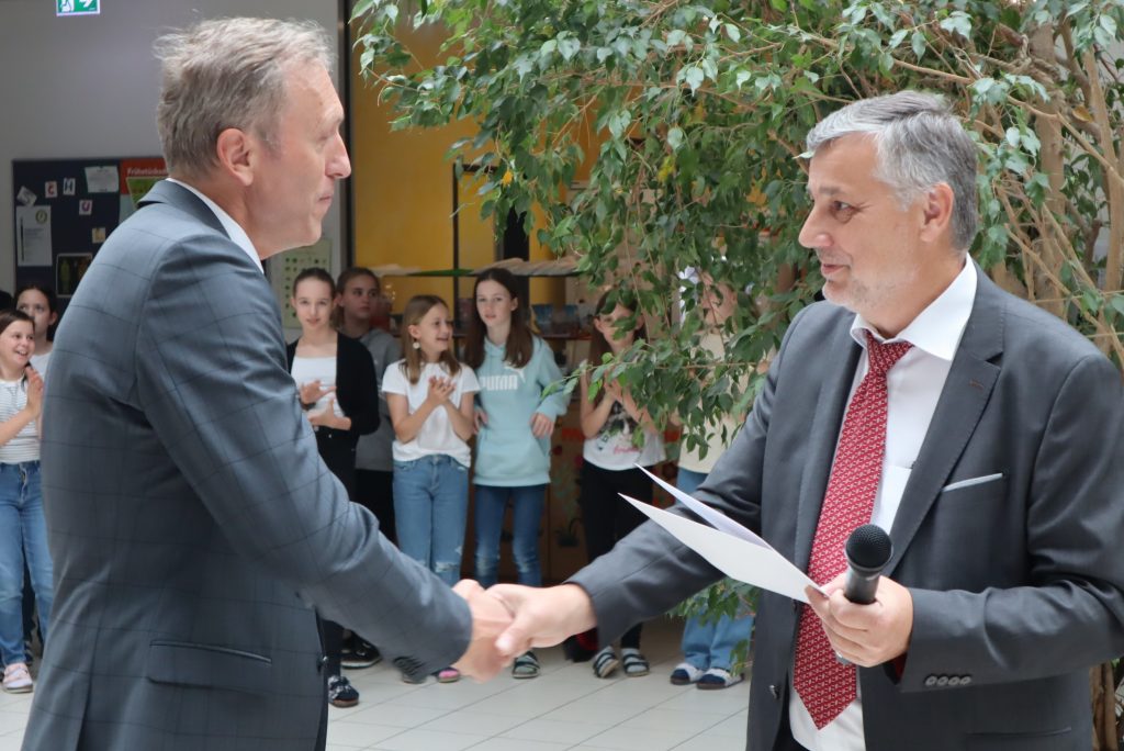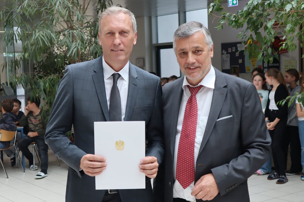 Am 24. Mai 2024 fand im Rahmen des Schulbesuches der Bildungsdirektion OÖ, bei dem auch die Klassen 4C (Digitale Grundbildung, Heidrun Zellinger) und 3D (Englisch, Julia Mayr) inspiziert wurden, meine Inauguration in das Amt des Schuldirektors statt. Der feierliche Akt, mit Ansprachen des Bildungsdirektors Alfred Klampfer und der Leiterin der Bildungsregion Linz/Linz-Land Sieglinde Thaller, erfolgte im Beisein der Schulqualitätsmanagerin Bella Pils, aller Schülerinnen und Schüler, Lehrerinnen und Lehrer, dem Verwaltungspersonal und der Obfrau des Elternvereins, Christina Forstner. Umrahmt von Instrumentalstücken des Schulorchesters unter der Leitung von Sabrina Adelberger und einer Videobotschaft von Anna Bart, Christian Breurather und Hannes Haunschmidt, direkt von der Outdoorwoche der 5. Klassen im Schloss Kassegg in St. Gallen, bekam ich zum Abschluss das offizielle Dekret des Bildungsministers überreicht. Ganz besonders gelungen war die Überraschung der Personalvertretung der Schule mit dem Rückblick auf meinen beruflichen Werdegang und die anschließende Ansprache von Katharina Wöckinger.