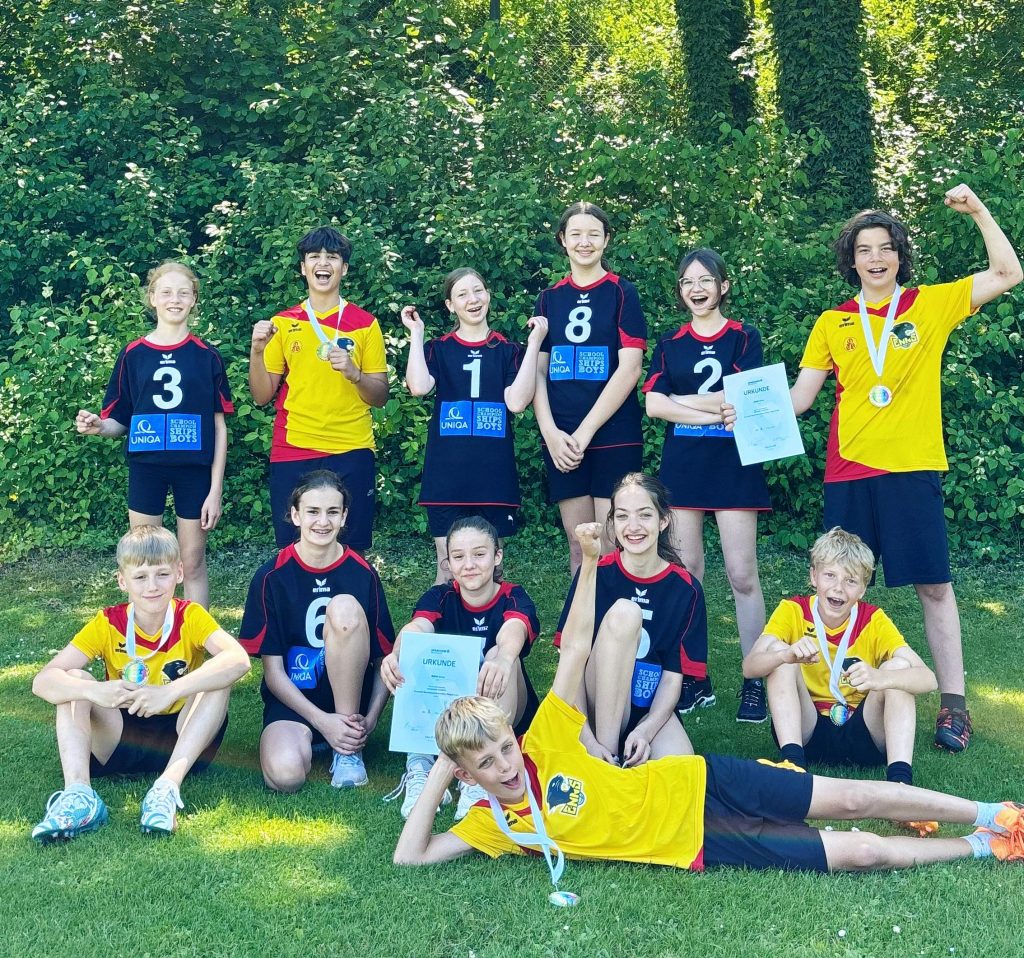 Gleich 2 Mannschaften unserer Schule waren am 23.05.24 bei den Regionalmeisterschaften der Unterstufe weiblich und Ministufe männlich dabei. Besonders erfreulich war, dass wir nach langer Pause wieder einmal eine Mädchenmannschaft stellen konnten. Für viele unserer Spieler*innen war dies das erste Antreten bei einem Faustball-Wettkampf, da beide Mannschaften nur mit wenigen erfahrenen Spielern antraten. Unsere Mannschaften zeigten tollen Teamgeist: die Erfahrenen unterstützten und pushten die Wettkampf-Neulinge. Schön zu beobachten war auch, dass so manche*r Schüler*in über sich hinauswuchs und Führungsqualitäten entwickelte. Am Ende dieses – für viele aufregenden – Tages verpassten wir leider mit beiden Teams (Ministufe männlich 2. Platz und Unterstufe weiblich 5. Platz) die Qualifikation für die Landesmeisterschaften, jedoch fuhren wir mit vielen positiven Eindrücken und hochmotiviert für zukünftige Wettkämpfe nach Hause.