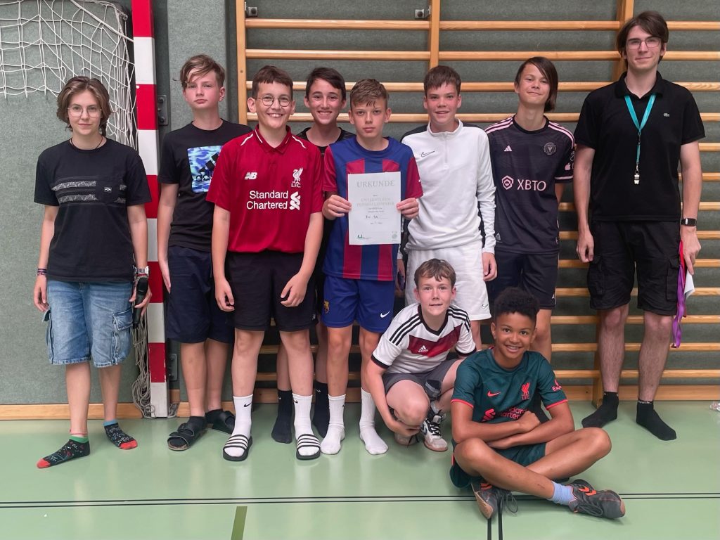 Am Mittwoch in der letzten Schulwoche fand das alljährliche Unterstufenturnier statt. Die Briefkästen gingen vor Anmeldungen der Teams regelrecht über, was uns natürlich extrem freute. In 31 Teams traten rund 200 Schüler*innen an, um mit Freund*innen Spaß zu haben oder um ihre Fußball-Skills zu beweisen. Nach einigen spannenden Gruppenspielen, bei denen eine Menge frisch gemachter Waffeln des Projektmanagements der 7. Klassen verzehrt wurden, fanden die Kreuzspiele und Viertelfinalspiele statt.