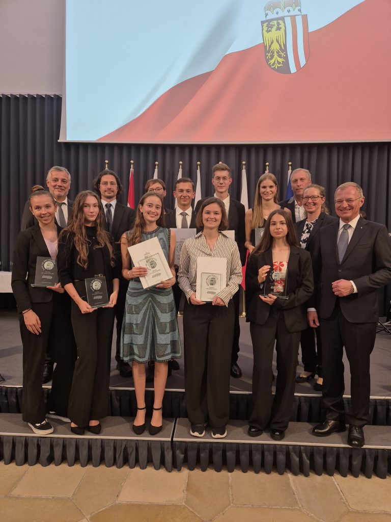 Am 19. August 2024 empfing der oberösterreichische Landeshauptmann, Mag. Thomas Stelzer, im Steinernen Saal des OÖ Landhauses all jene Maturantinnen und Maturanten des b[r]g Enns, welche die Reifeprüfung mit ausgezeichnetem Erfolg absolvierten und übergab ihnen im Rahmen dieser Ehrung ein gläsernes Exponat und eine Urkunde.