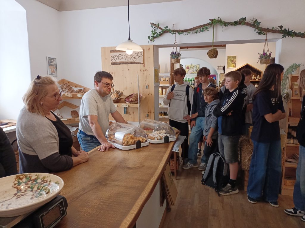 Nach der Führung machten wir uns mit Herrn Professor Weinberger auf den Weg zum Hofladen der Lebenshilfe. Dort konnten wir verschiedene Produkte kaufen, die in der Werkstätte hergestellt oder von anderen Firmen frisch geliefert wurden.