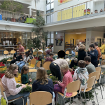 So wie im Film „Dinner for One“ das Essensritutal jedes Jahr wiederholt wird, wiederholen wir das Kranzbinden jedes Jahr und füllen das Schulhaus mit Tannenduft, fröhlichen Gesichtern, viel Kreativität und ganz viel Motivation. Viele kleine und große Künstler*innen zeigen, was sie können, auch, wenn sie noch nie einen Adventkranz gebunden haben. Beeindruckend, wie viel Fingerspitzengefühl, motorisches Können und Fantasie hier zum Vorschein kommen.