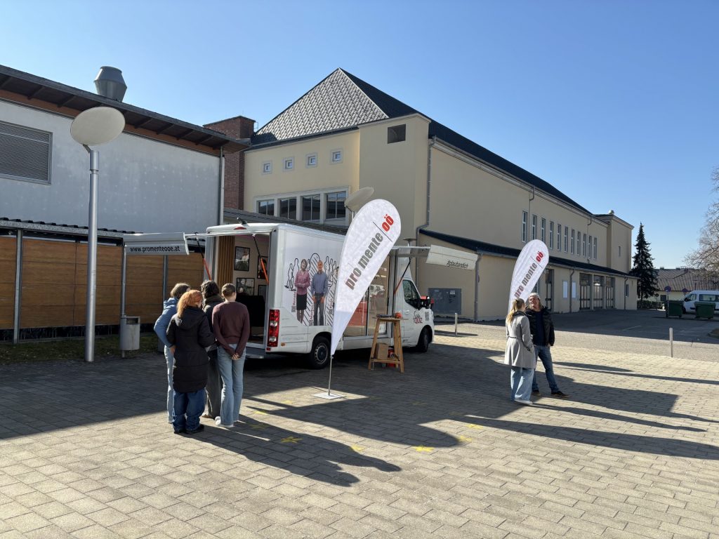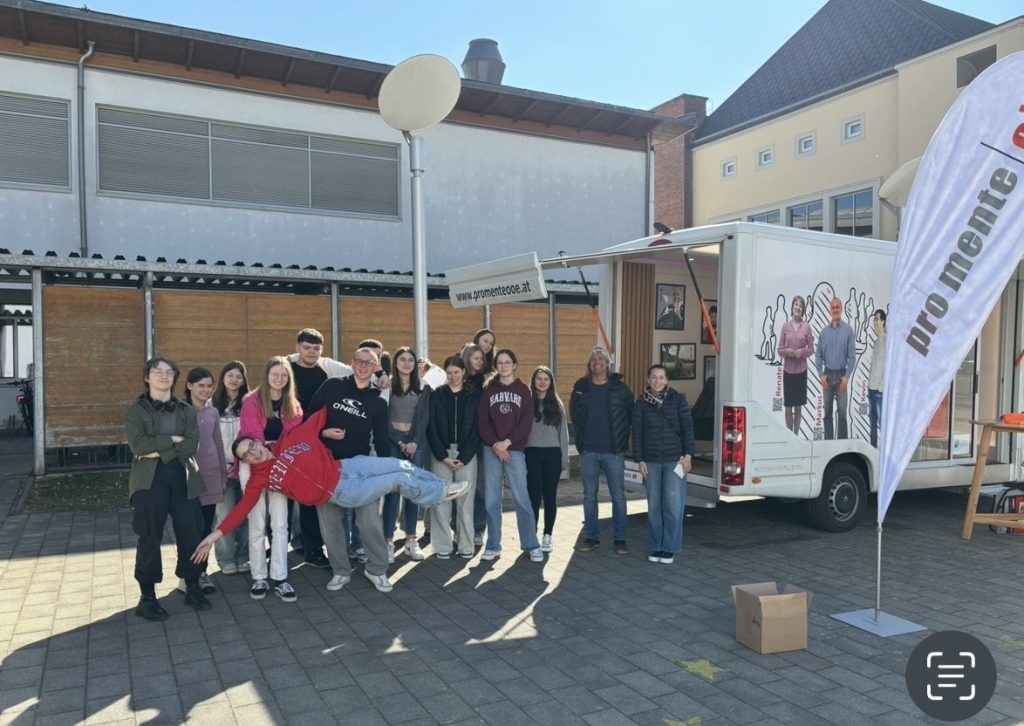 Am 27.2. und 6.3. 2025 konnten einige Klassen des b[r]g Enns das Schulangebot des #proMobil (pro mente) nutzen. Seit 1964 ist pro mente OÖ von der Vision geprägt, psychische Erkrankungen und das Thema psychische Gesundheit vom Rand der Gesellschaft in unsere Mitte zu holen. Das #proMobil will direkt vor Ort in allen Regionen Oberösterreichs für psychische Gesundheit sensibilisieren, informieren und Raum für Austausch schaffen.