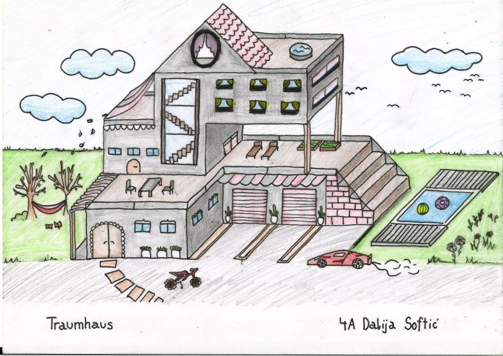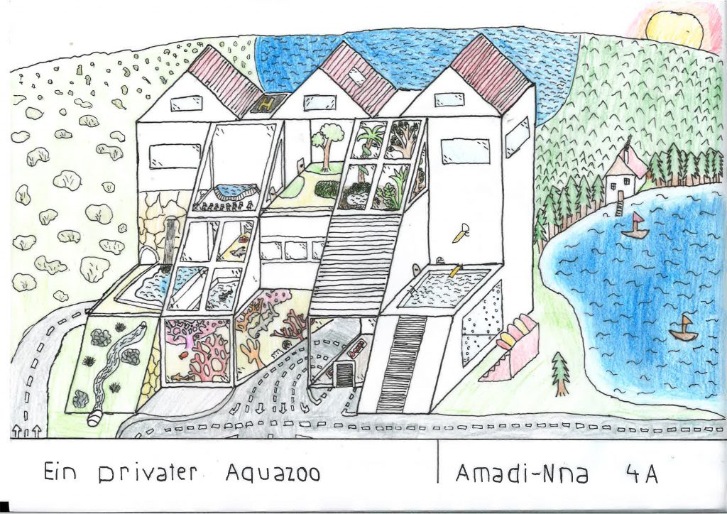 Den Abschluss bildete die Ausgestaltung auf Transparentpapier. Hierbei wurden die Zeichnungen in Freihand mit Tusche und einer passenden Farbgestaltung veredelt. Das Ergebnis waren beeindruckende Arbeiten: von einem fantasievollen Aquazoo mit Indoor-Aquarien über prunkvolle Villen bis hin zu begrünten, organisch anmutenden Bauwerken und modernen Architektenhäusern mit Flachdächern und Poolanlagen.