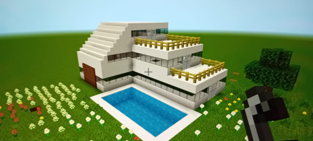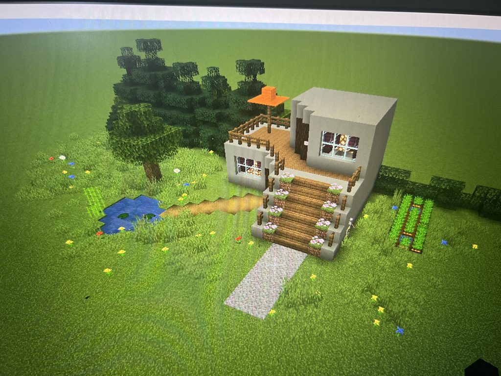 Einige Schüler*innen gingen sogar noch einen Schritt weiter und bauten ihr Haus als freiwillige Zusatzaufgabe in Minecraft (Screenshots von Parkfrieder Mara und Ichim David aus der 4BR) nach. Hierbei entstanden tolle digitale Modelle, die die kreative und technische Auseinandersetzung mit dem Thema weiter vertieften.