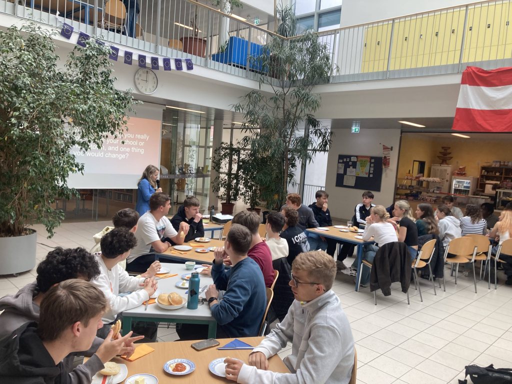 Ein gemeinsames Frühstück mit Sprechanlässen bot Gelegenheit zum Austausch mit Gleichaltrigen. Unterrichtshospitationen gaben einen Einblick in das österreichische Bildungswesen und bei einer Foto-Challenge in Enns konnten die bewegte Geschichte der Region und die reiche Architektur der Stadt auf lustige Weise entdeckt werden.