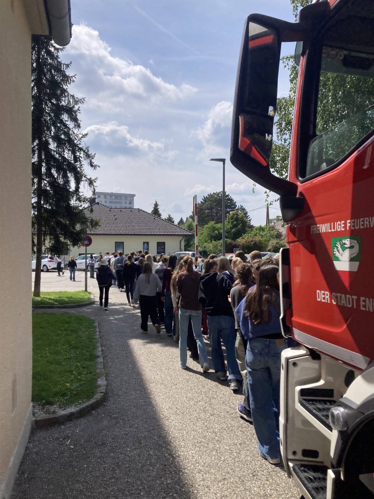 Ein weiteres Highlight war definitiv der Besuch im Memorial Mauthausen, der von Julia Mayr in beeindruckender Weise vorbereitet und begleitet wurde. Da sich gerade in dieser Woche die Befreiung zum achtzigsten Mal jährte, war der Rundgang für die Schüler*innen umso eindrucksvoller. Um danach den Bogen wieder zum heutigen, geeinten Europa zu spannen und zu zeigen, wie wichtig Kooperation ist, durften wir dank der Unterstützung der Freiwilligen Feuerwehr Enns mit vereinten Kräften ein 17-Tonnen-Fahrzeug ziehen.