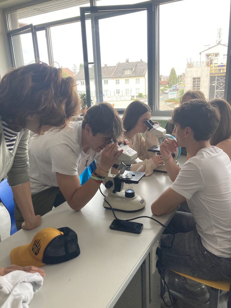 Auch die Nachhaltigkeit und der Umweltschutz fanden ihren Niederschlag im Erasmus-Programm der Woche. Bei dem „citizen science“-Projekt SoilBlitz wurden an mehreren Stellen Bodenproben entnommen und Bodengesundheitsindikatoren getestet. Am Nachmittag konnten die Schüler*innen diese und andere Proben und Objekte mikroskopisch untersuchen.