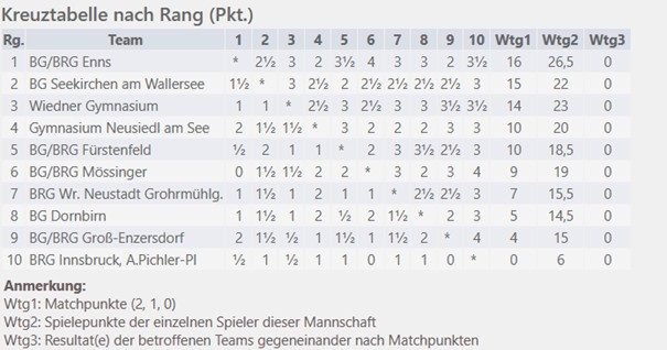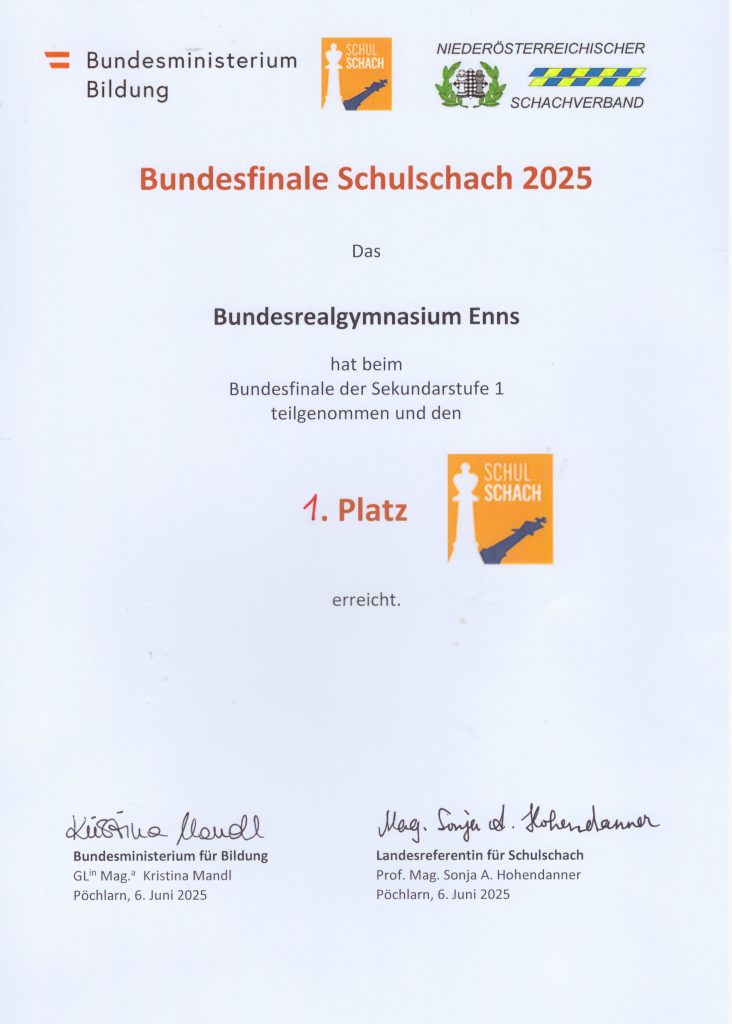 Vom 2. bis 6. Juni 2025 fand in Pöchlarn (Niederösterreich) das österreichische Bundesfinale für Schulschach in den Sekundarstufen 1 und 2 statt – und das b[r]g Enns durfte dabei Oberösterreich in der Sekundarstufe 1 vertreten.