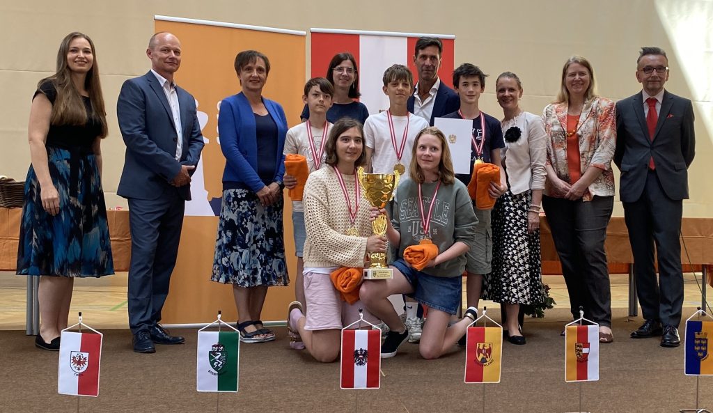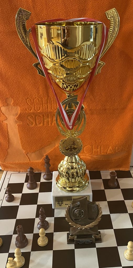 Unser Team bestand aus folgenden fünf Spieler*innen: Noah Pleimer (2A), Thomas Kim (3D), Stella Haslinger (3D), Hannah Schneiderbauer (3C) und David Hoffelner (3D). Von Beginn an schaffte es die Mannschaft des b[r]g Enns, in Führung zu gehen und diese nach jeder Runde zu halten. Ohne eine einzige Niederlage – mit 7 Siegen und 2 Remis – gelang es unserem Team, sich nach neun spannenden Runden den Bundestitel zu sichern und den Sieg in der Sekundarstufe 1 nach Oberösterreich zu holen. Eine wirklich tolle Leistung! Zudem gewannen Noah und Thomas die Einzelwertung auf ihrem jeweiligen Brett. Neben einem großen Pokal, Medaillen und den zwei Einzelbrettpreisen konnten unsere Schüler*innen auch orange Handtücher mit dem Schulschach-Logo mit nach Hause nehmen, die sie an die schöne Zeit in Pöchlarn erinnern werden.