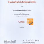 Wir gratulieren dem gesamten Team sehr herzlich zu diesem großartigen Erfolg und sind stolz, dass das b[r]g Enns als Vertreter Oberösterreichs den österreichischen Schulschach-Bundestitel 2025 in der Sekundarstufe 1 erringen konnte.